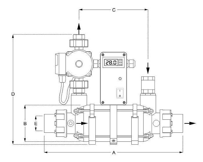 Készre szerelt,kompakt PP házas, bordázott rozsdamentes ( VA típus) vagy titán (TI típus)csőspirálos nagy hatékonyságú hőcserélő. Medencék, pezsgőfürdők, fürdőtavak fűtésére.