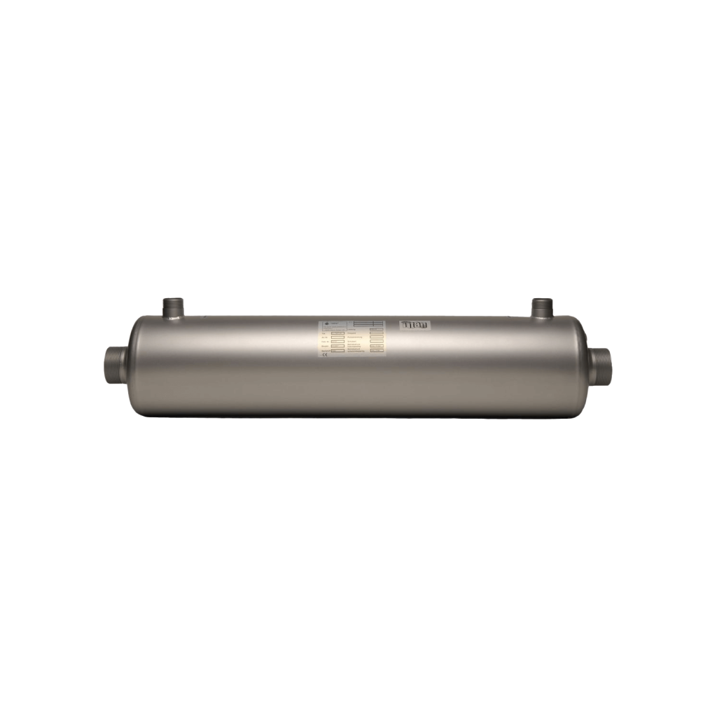 Víz/víz hőcserélő, a megszokott prémium kivitelezéssel és gondossággal, a legkorszerűbb hegesztéssel megmunkálva. Ez a prémium hőcserélő kompromisszumok nélküli korrózióállósággal rendelkezik, még a medencevíz magas sótartalma esetén is, ezért tengervízálló. Ezek a hőcserélők maximális energiahatékonyságot kínálnak minimális nyomásveszteség mellett. Mint minden tekercscsöves hőcserélőt, ezeket is be kell építeni a fürdővízkörforgásba, vagy közvetlenül, vagy a bypass-rendszeren keresztül.