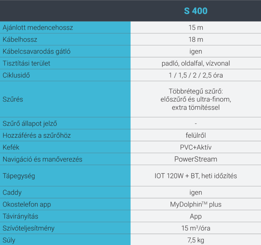 Fedezd fel a kivételes élményt, amit egy automatizált medencetisztítás nyújt és tapasztald meg a kiváló Maytronics Dolphin Robot S Line medencetisztítást az S400 modellel.