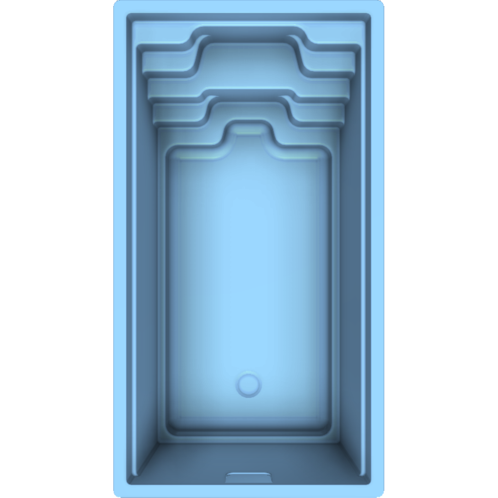 1-2-3. réteg: egy 3 dimenziós multicolor medencefelület, mely egy fröccstechnológiával egymás utáni rétegben felvitt Gelcoat (első poliészter gélréteg) réteg