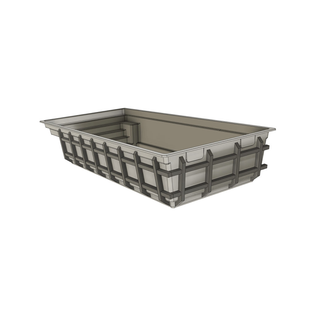 Az egymásra merőleges, teljes hossz és keresztirányú, valamint a medencetest sarkain, „körbe” átszövő erős merevítő bordázatok nagyban megerősítik és lényegesen leegyszerűsítik időben, valamint költségekben is kíméletesebbé teszik a medencetest telepítését, csökkentve az esetleges igénybevételektől fakadó szerkezeti sérülések esélyeit is.