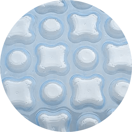 UV stabilizált polietilén szolártakaró esztétikus kék színben, a medence vizének hőntartására és melegítésére. Az OXO szolártakaró 2 különböző formájú buborékjának köszönhetően kivételes fizikai, termikus és mechanikai teljesítményt nyújt.