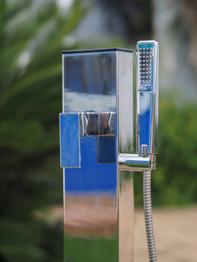 Prémium minőségű, rozsdamentes acél zuhany hideg és meleg vizes csappal, kézi tusolóval és rögzítő elemmel.