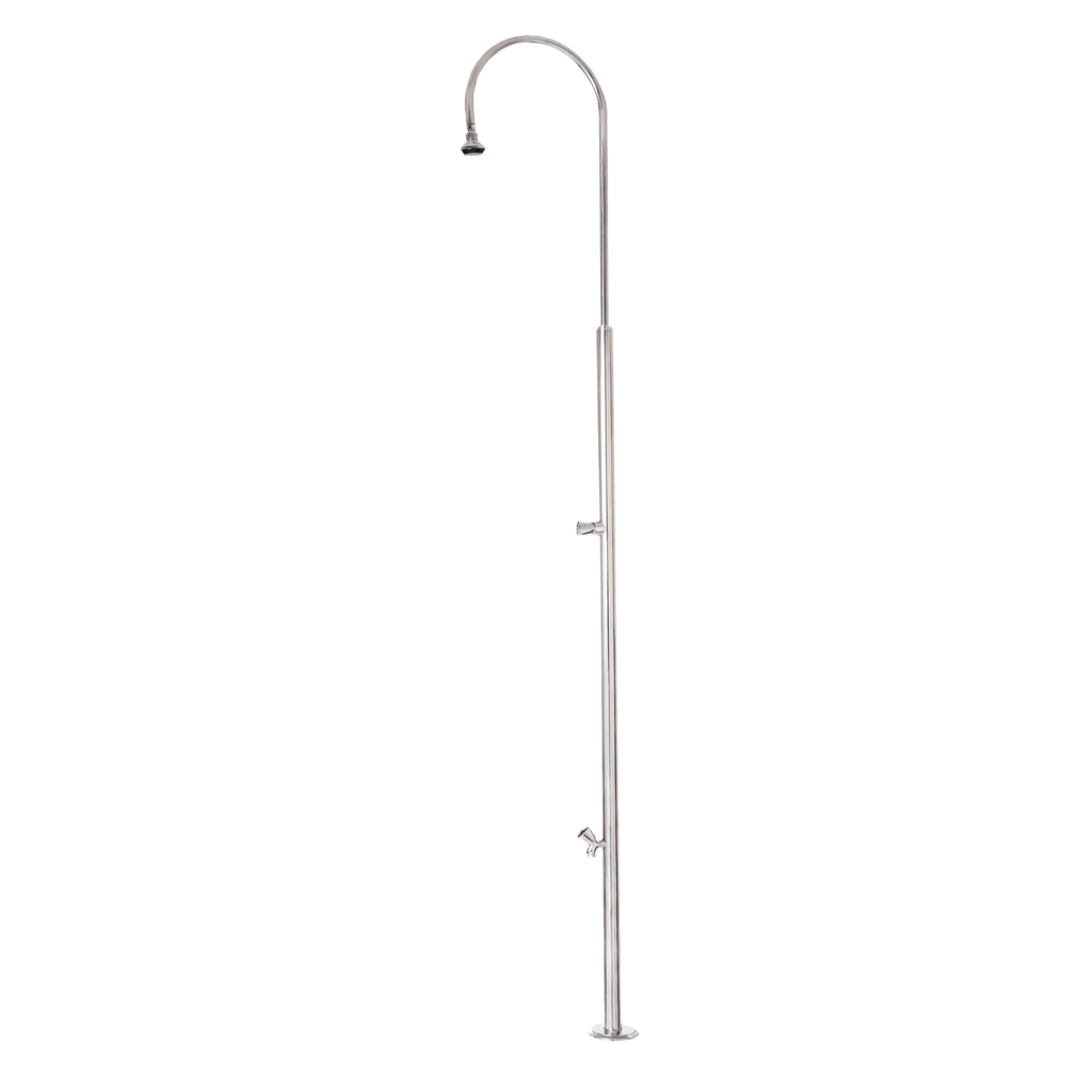 Rozsdamentes acél zuhany krómozott csapteleppel és zuhanyfejjel.