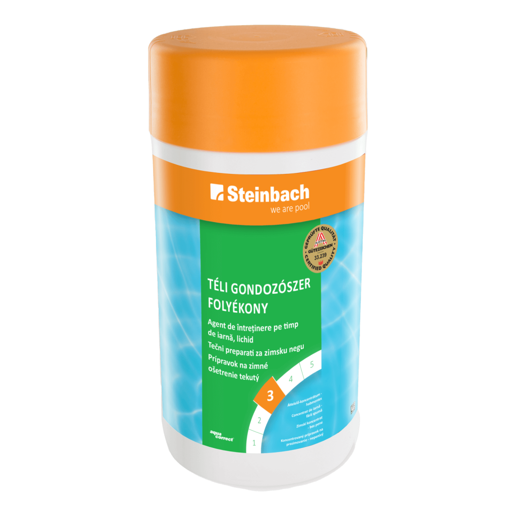 1 L-es Kiszerelés:ű folyadék úszómedence téliesítésére. Hosszú távú és hatású koncentrált szer, amely védi a medencét a lerakódásoktól, vízkőképződéstől és a különböző szennyeződésektől, mint erős algaképződés a feltöltött medencében mielőtt végleg téliesíti a medencét.