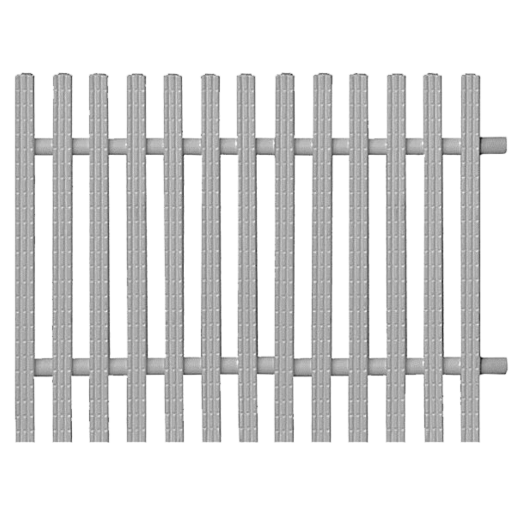 PP (polipropilén) túlfolyó rács egyenes, fix eleme, I alakú profillal, fehér színben.