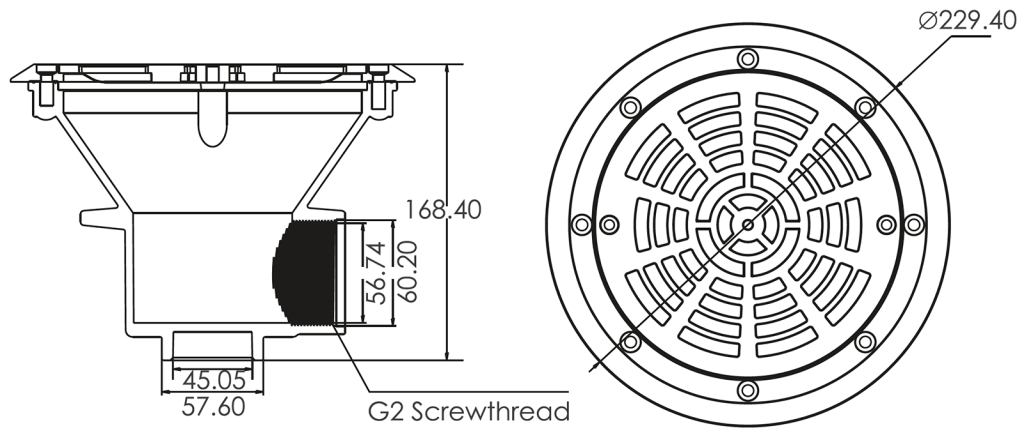 A védőrács rozsdamentes csavarokkal rögzített, megfelelő átmérőjű csonk hidrosztatikus szelep csatlakoztatáshoz.