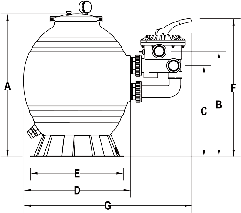 Bilincses rögzítésű 4 vagy 6-utas TOP váltószeleppel szerelt. A 360 fokban forgatható váltószelepnek köszönhetően könnyen telepíthető Basic szűrőtartály magán medencékhez.