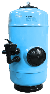 Üvegszál erősítésű laminált poliészter szűrőtartály közületi medencékhez, figyelőablakkal, vízgyűjtő tölcsérrel. Tartozéka a nyomásmérő óra és légtelenítőszelep. A szűrőágy kollektor karokkal van felszerelve.