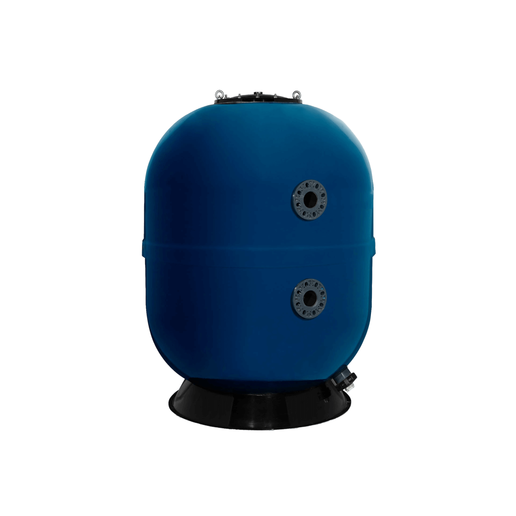 Üvegszál erősített szűrőtartály közületi medencékhez, iparági szabványoknak megfelelő kialakítás, UV sugárzás elleni védőréteg, kollektor karos kialakítás.