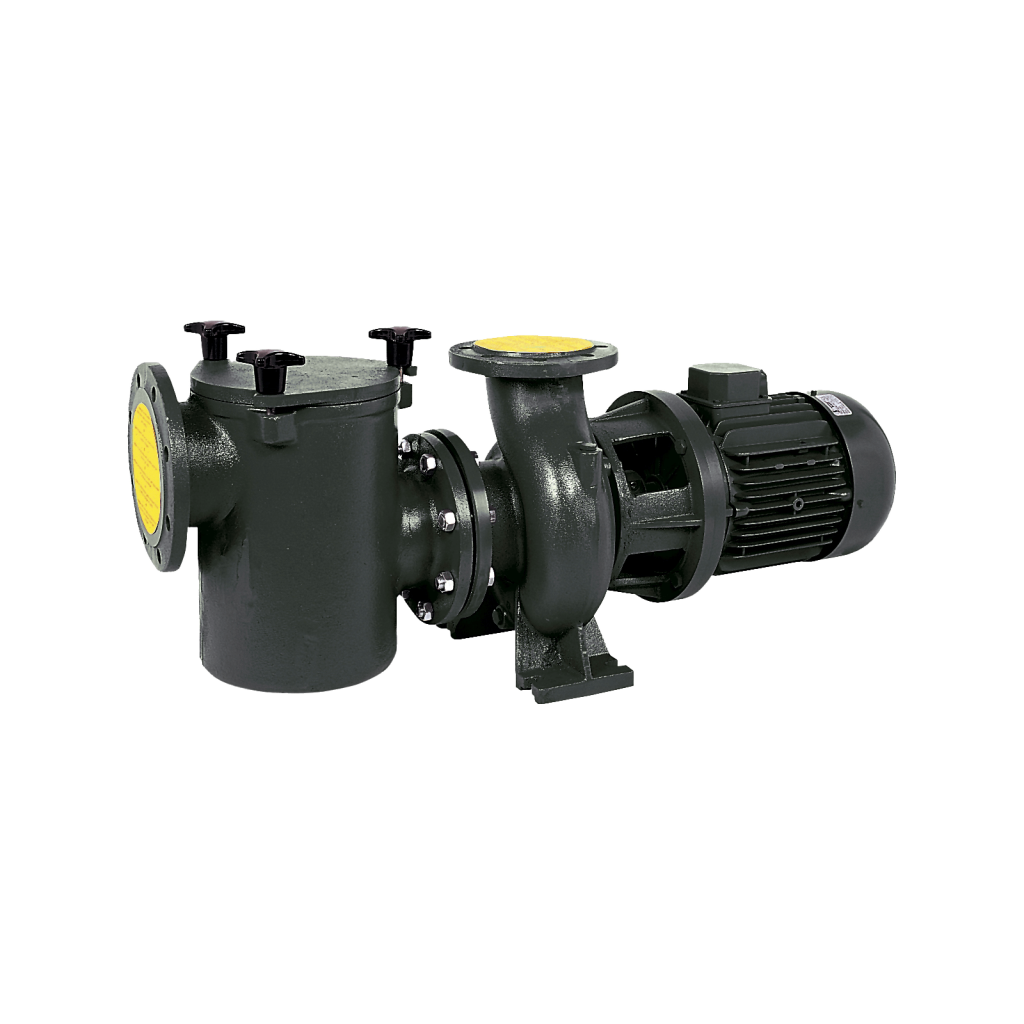 Nagy teljesítményű szivattyú közületi használatra. Egy nagy teljesítményű centrifugál szivattyú, amelynek bemenetéhez egy előszűrőt csatlakoztattak, így ezek ideális szivattyúk nagy úszómedencék szűrőegységeihez.