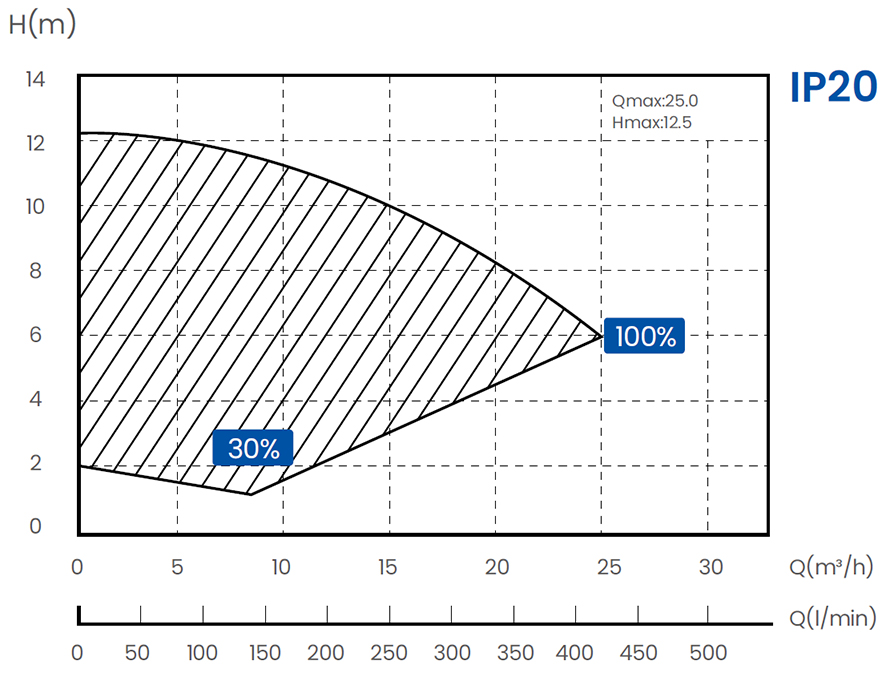 - Térfogatáram maximum 8m: 17,9 m3/h