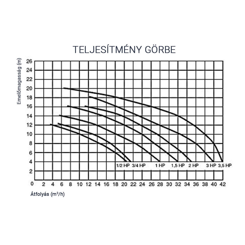 - Működési tartomány: 28 m3/h H=10m